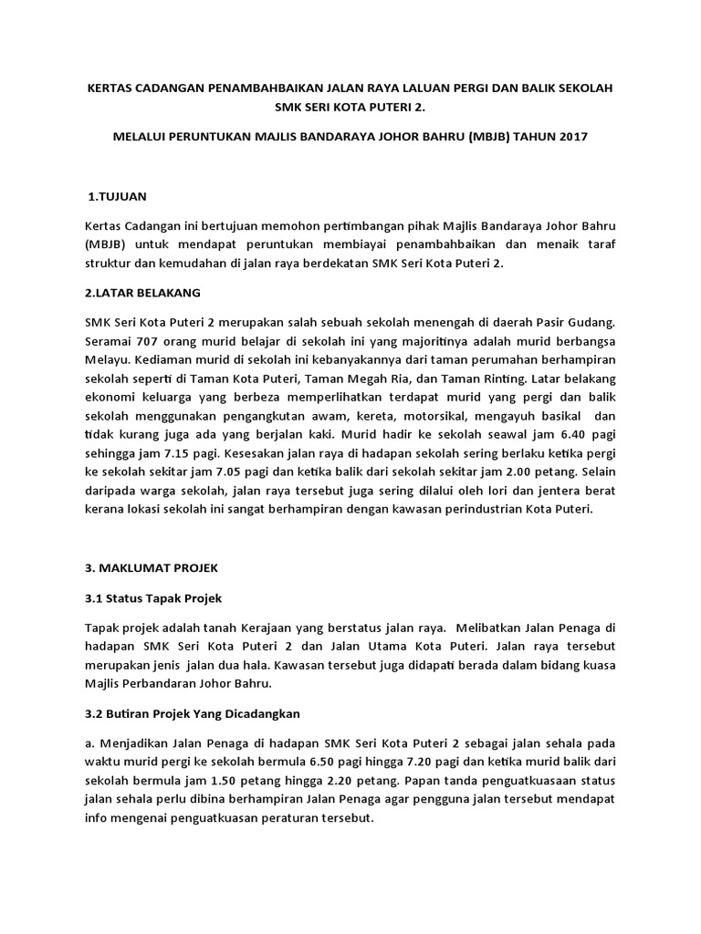 Kertas Cadangan Penambahbaikan Jalan Kepada Mbjbedit